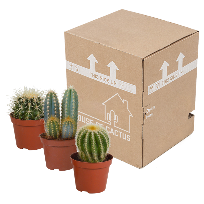 Deze cactus mix bestaat uit 3 cactussen die in kleur, hoogte en vorm van elkaar verschillen. De cactussen zijn met zorg opgekweekt in een kweekpot met een diameter van 8,5 cm. De hoogte van de cactussen ligt tussen de 13 en 18 cm. De cactus is eenvoudig te verzorgen. De cactus staat graag op een lichte plaats én kan in de zon staan. De cactus heeft in de groeiperiode van maart t/m september 1x per 2 weken water nodig. In de rustperiode van oktober t/m februari is 1x per maand water geven voldoende. Zorg ervoor dat de grond tussen de waterbeurten goed is uitgedroogd.