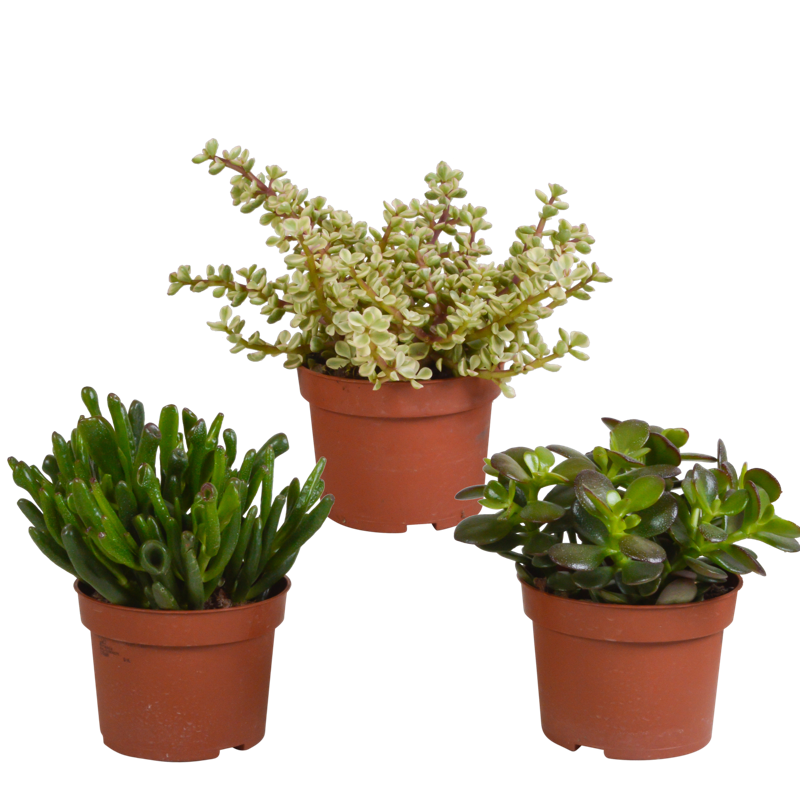 Deze Crassula mix bestaat uit 3 Crassula’s die in kleur, hoogte en vorm van elkaar verschillen. De Crassula’s zijn met zorg opgekweekt in een kweekpot met een diameter van 10,5 cm. De hoogte van de Crassula’s ligt tussen de 16 en 21 cm. De Crassula is eenvoudig te verzorgen. De Crassula staat graag op een lichte plaats én kan in de zon staan. De Crassula heeft in de groeiperiode van maart t/m september 1x per 2 weken water nodig. In de rustperiode van oktober t/m februari is 1x per maand water geven voldoende. Zorg ervoor dat de grond tussen de waterbeurten goed is uitgedroogd.