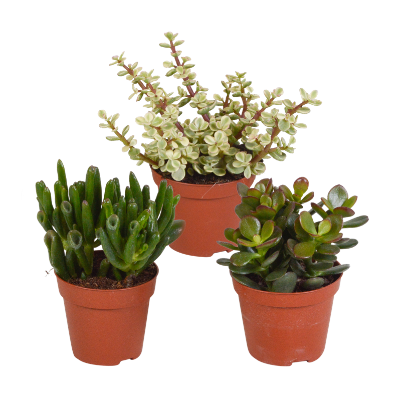 Deze Crassula mix bestaat uit 3 Crassula’s die in kleur, hoogte en vorm van elkaar verschillen. De Crassula’s zijn met zorg opgekweekt in een kweekpot met een diameter van 8,5 cm. De hoogte van de Crassula’s ligt tussen de 13 en 18 cm. De Crassula is eenvoudig te verzorgen. De Crassula staat graag op een lichte plaats én kan in de zon staan. De Crassula heeft in de groeiperiode van maart t/m september 1x per 2 weken water nodig. In de rustperiode van oktober t/m februari is 1x per maand water geven voldoende. Zorg ervoor dat de grond tussen de waterbeurten goed is uitgedroogd.
