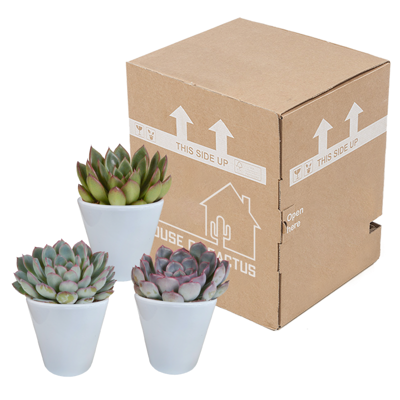 Deze Echeveria mix bestaat uit 3 Echeveria’s die in kleur van elkaar verschillen. De Echeveria’s worden geleverd in een witte pot. De Echeveria’s zijn met zorg opgekweekt in een kweekpot met een diameter van 8,5 cm. De hoogte van de Echeveria’s, inclusief sierpot, ligt tussen de 12 en 15 cm. De Echeveria is eenvoudig te verzorgen. De Echeveria staat graag op een lichte plaats én kan in de zon staan. De Echeveria heeft in de groeiperiode van maart t/m september 1x per 2 weken water nodig. In de rustperiode van oktober t/m februari is 1x per maand water geven voldoende. Zorg ervoor dat de grond tussen de waterbeurten goed is uitgedroogd.