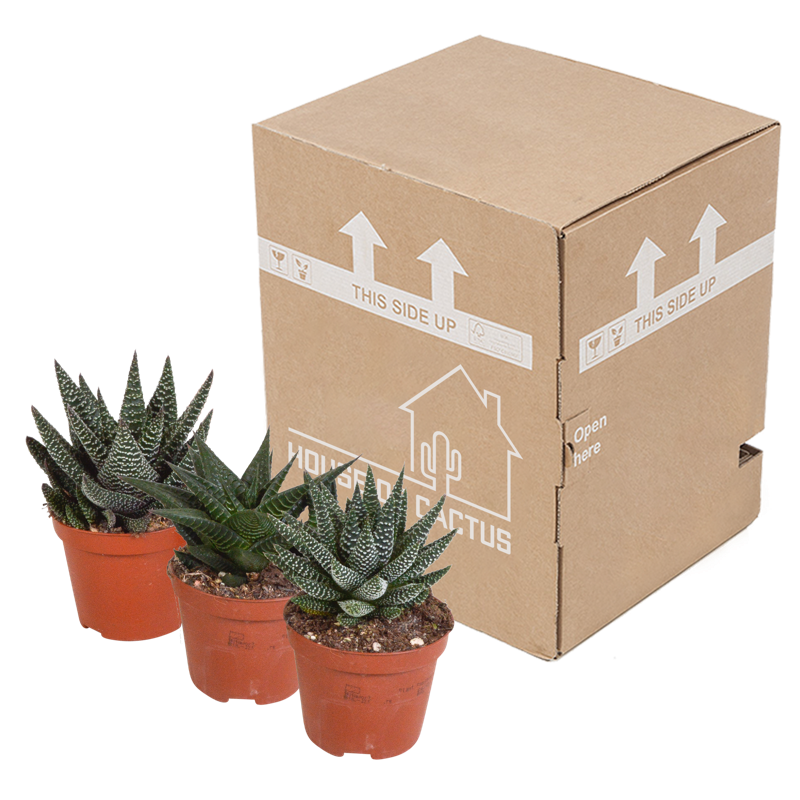 Deze Gasteria/Haworthia mix bestaat uit 3 Gasteria’s/Haworthia’s die in kleur van elkaar verschillen. De Gasteria’s/Haworthia’s zijn met zorg opgekweekt in een kweekpot met een diameter van 8,5 cm. De hoogte van de Gasteria’s/Haworthia’s ligt tussen de 13 en 18 cm. De Gasteria/Haworthia is eenvoudig te verzorgen. De Gasteria/Haworthia staat graag op een lichte plaats én kan in de zon staan. De Gasteria/Haworthia heeft in de groeiperiode van maart t/m september 1x per 2 weken water nodig. In de rustperiode van oktober t/m februari is 1x per maand water geven voldoende. Zorg ervoor dat de grond tussen de waterbeurten goed is uitgedroogd.