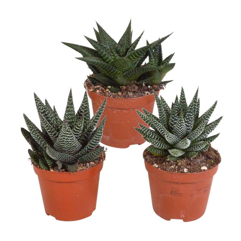 Deze Gasteria/Haworthia mix bestaat uit 3 Gasteria’s/Haworthia’s die in kleur van elkaar verschillen. De Gasteria’s/Haworthia’s zijn met zorg opgekweekt in een kweekpot met een diameter van 8,5 cm. De hoogte van de Gasteria’s/Haworthia’s ligt tussen de 13 en 18 cm. De Gasteria/Haworthia is eenvoudig te verzorgen. De Gasteria/Haworthia staat graag op een lichte plaats én kan in de zon staan. De Gasteria/Haworthia heeft in de groeiperiode van maart t/m september 1x per 2 weken water nodig. In de rustperiode van oktober t/m februari is 1x per maand water geven voldoende. Zorg ervoor dat de grond tussen de waterbeurten goed is uitgedroogd.