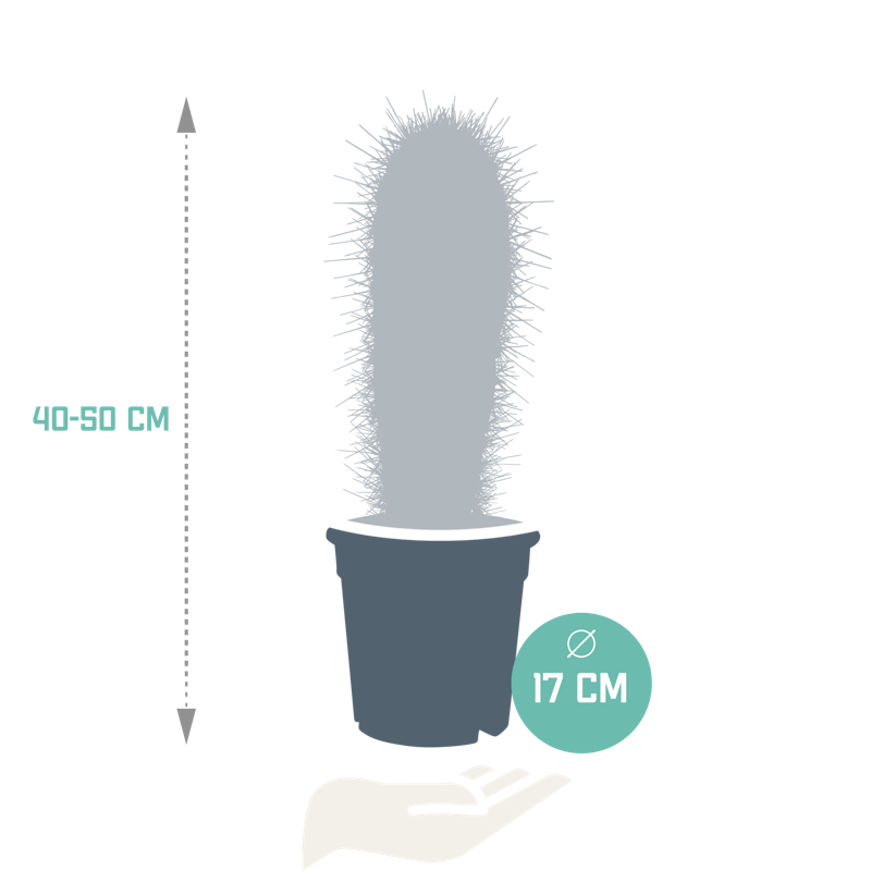 De Pachycereus pringlei is een groenblauwe zuilcactus met grote scherpe grijze stekels. De Pachycereus pringlei is met zorg opgekweekt in een kweekpot met een diameter van 17 cm. De hoogte van de Pachycereus pringlei ligt tussen de 30 – 40 cm. De Pachycereus pringlei is eenvoudig te verzorgen. De Pachycereus pringlei staat graag op een lichte plaats én kan in de zon staan. De Pachycereus pringlei heeft in de groeiperiode van maart t/m september 1x per 2 weken water nodig. In de rustperiode van oktober t/m februari is 1x per maand water geven voldoende. Zorg ervoor dat de grond tussen de waterbeurten goed is uitgedroogd.