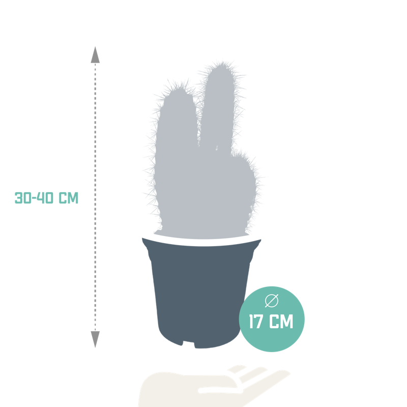 De Pilosocereus azureus is een blauwgroene zuilcactus met groengele stekels. De Pilosocereus azureus is met zorg opgekweekt in een kweekpot met een diameter van 17 cm. De hoogte van de Pilosocereus azureus ligt tussen de 30 – 40 cm. De Pilosocereus azureus is eenvoudig te verzorgen. De Pilosocereus azureus staat graag op een lichte plaats én kan in de zon staan. De Pilosocereus azureus heeft in de groeiperiode van maart t/m september 1x per 2 weken water nodig. In de rustperiode van oktober t/m februari is 1x per maand water geven voldoende. Zorg ervoor dat de grond tussen de waterbeurten goed is uitgedroogd.