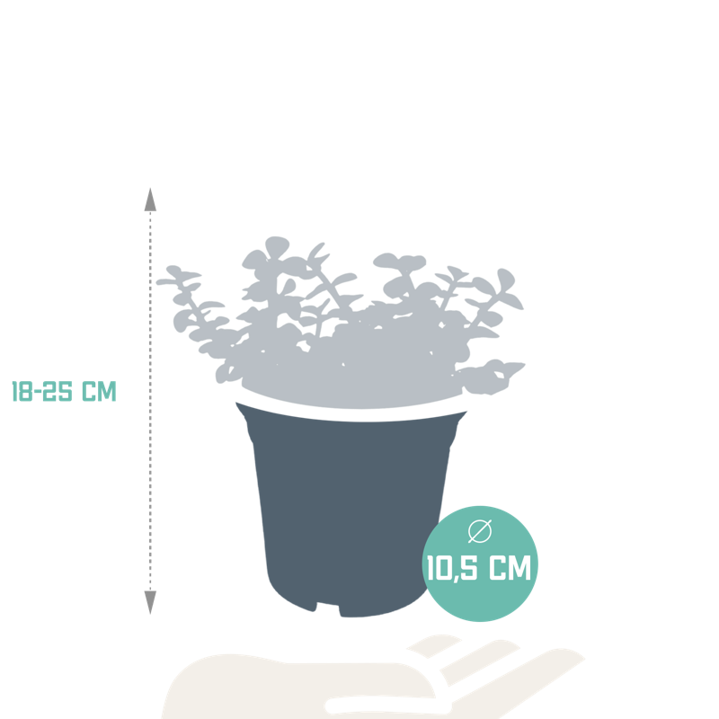 De Portulacaria afra Variegata groen beschikt over groene bladeren met een rode stam. De Portulacaria is met zorg opgekweekt in een kweekpot met een diameter van 10,5 cm. De hoogte van de Portulacaria ligt tussen de 18 en 25 cm. De Portulacaria is eenvoudig te verzorgen. De Portulacaria staat graag op een lichte plaats én kan in de zon staan. De Portulacaria heeft in de groeiperiode van maart t/m september 1x per 2 weken water nodig. In de rustperiode van oktober t/m februari is 1x per maand water geven voldoende. Zorg ervoor dat de grond tussen de waterbeurten goed is uitgedroogd.