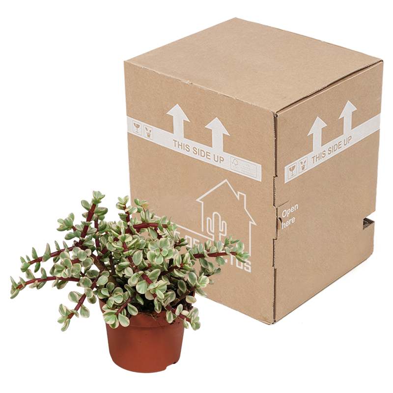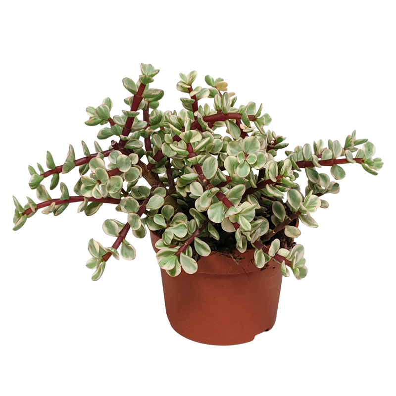 De Portulacaria afra Variegata beschikt over kleine gele bladeren met een rode stam. De Portulacaria is met zorg opgekweekt in een kweekpot met een diameter van 10,5 cm. De hoogte van de Portulacaria ligt tussen de 18 en 25 cm. De Portulacaria is eenvoudig te verzorgen. De Portulacaria staat graag op een lichte plaats én kan in de zon staan. De Portulacaria heeft in de groeiperiode van maart t/m september 1x per 2 weken water nodig. In de rustperiode van oktober t/m februari is 1x per maand water geven voldoende. Zorg ervoor dat de grond tussen de waterbeurten goed is uitgedroogd.