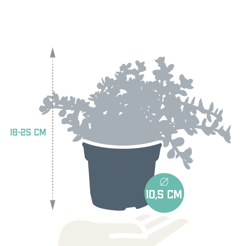 De Portulacaria afra Variegata beschikt over kleine gele bladeren met een rode stam. De Portulacaria is met zorg opgekweekt in een kweekpot met een diameter van 10,5 cm. De hoogte van de Portulacaria ligt tussen de 18 en 25 cm. De Portulacaria is eenvoudig te verzorgen. De Portulacaria staat graag op een lichte plaats én kan in de zon staan. De Portulacaria heeft in de groeiperiode van maart t/m september 1x per 2 weken water nodig. In de rustperiode van oktober t/m februari is 1x per maand water geven voldoende. Zorg ervoor dat de grond tussen de waterbeurten goed is uitgedroogd.